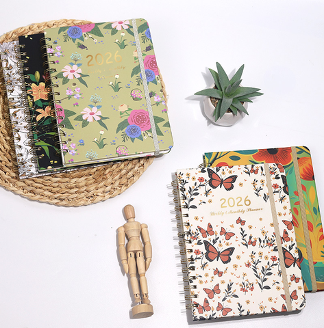 สมุดแพลนเนอร์2025สมุดโน้ตสำหรับวางแผนงานพิมพ์ลายตามสั่งพิมพ์ลายหน้าสีแบบเกลียวผูกเกลียวสำหรับชีวิตประจำวัน